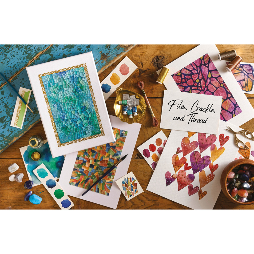 - Try new things: Start experimenting with a host of techniques including collage, printing, metallics, salt, alcohol, crackle paste, and even adding simple embroidered accents to your work.