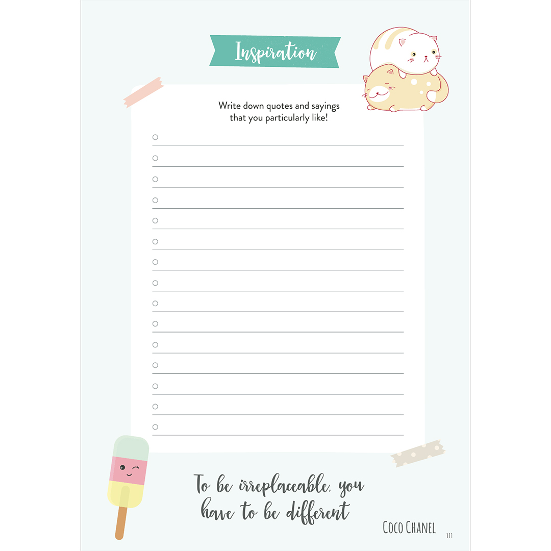 A Bullet Journal can be used as a calendar, diary, organiser, habit tracker or all of these things. But not everyone has the time or ideas to design the pages themselves. My Kawaii Journal is the perfect solution, with pages pre-designed with adorable art for you to start filling with lists, goals, plans, secrets and dreams.