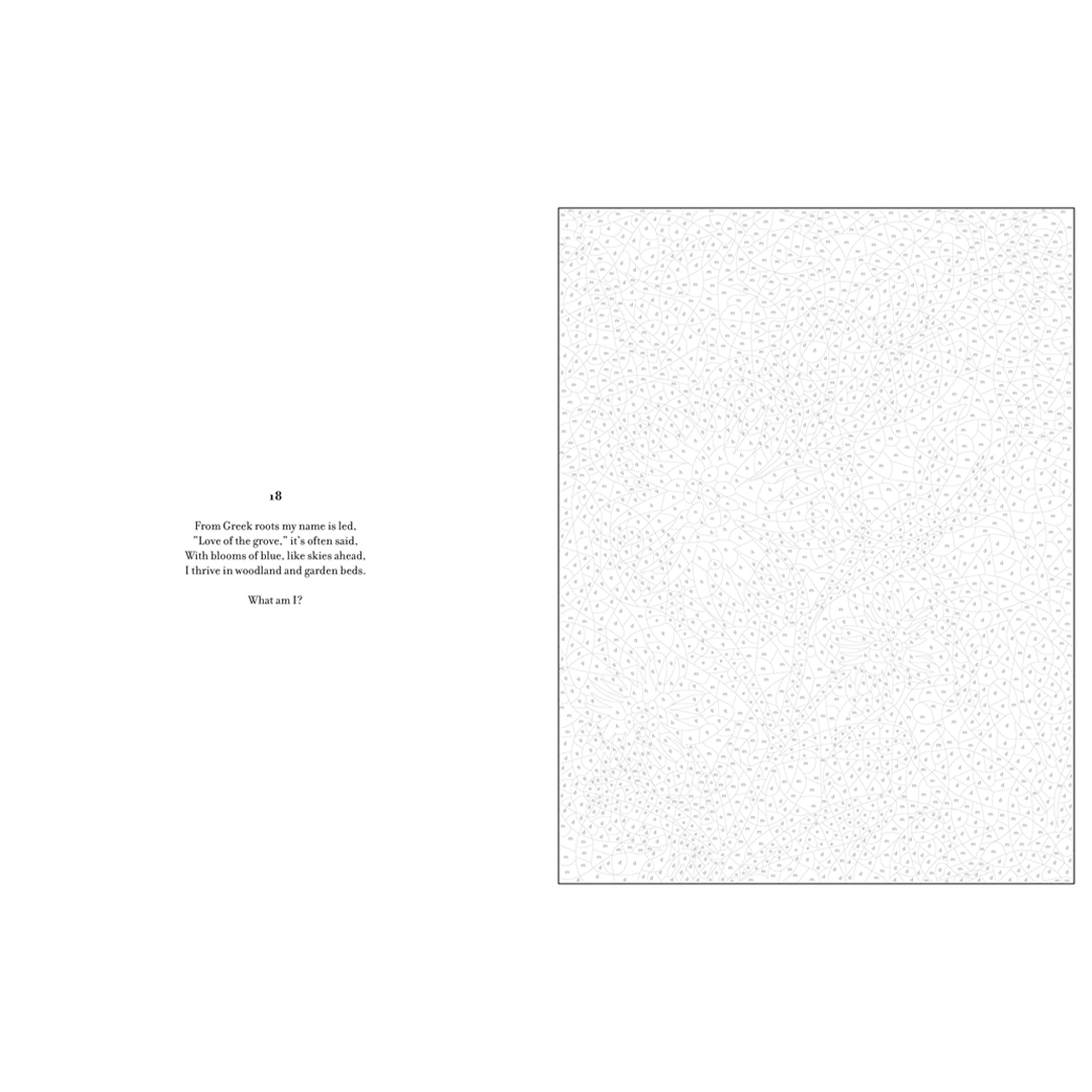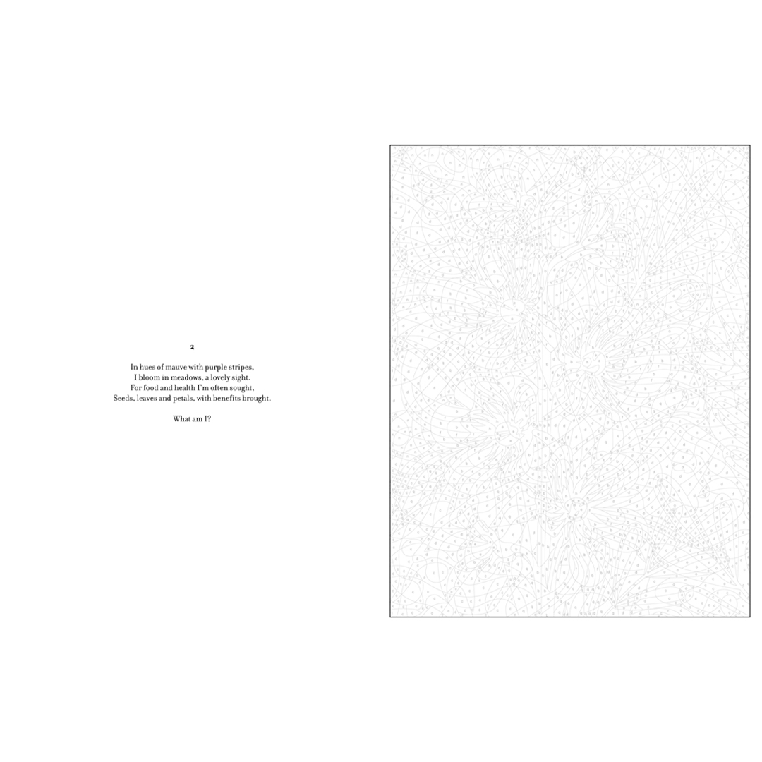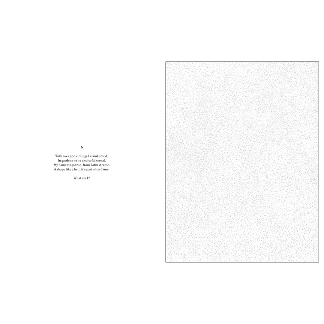 - To add to the fun, each illustration comes with a riddle that you can ponder as you bring the artwork to life. Uncover the answers in words and pictures at the end of the book.
