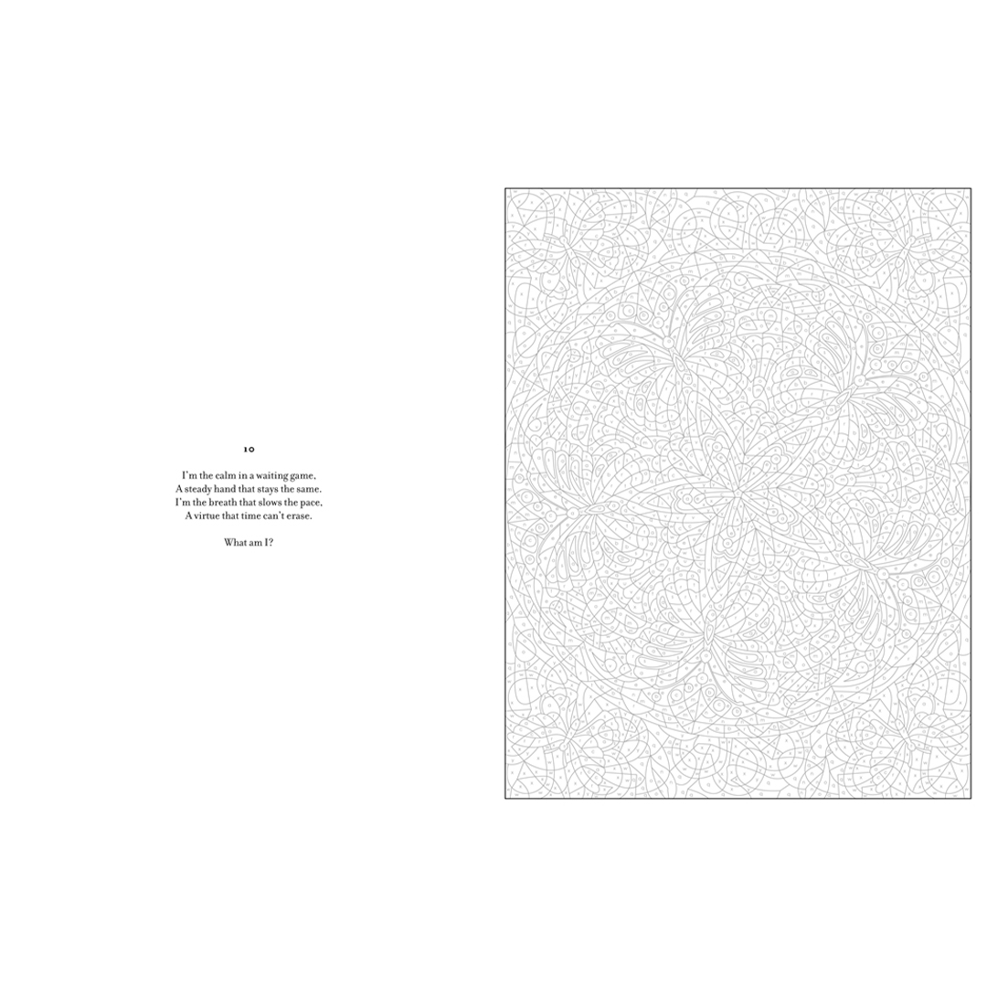 - To add to the fun, each illustration comes with a riddle that you can ponder as you bring the artwork to life. Uncover the answers in words and pictures at the end of the book.