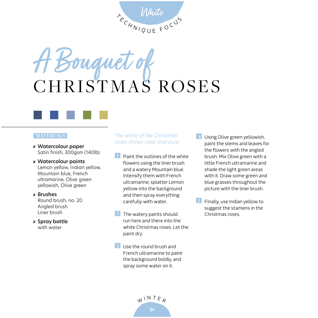 Paint your way through a lush landscape of flowers, fruits and trees – including a lively vase of impatient spring blooms, dreamy water lilies floating on a still pond on a summer evening, a golden forest and a rich autumn harvest, and finish with a sparkling pink star lily complete with frosted leaves marking the arrival of Christmas and the year’s end. Each painting is rendered in watercolour in the author’s loose, sensitive style.