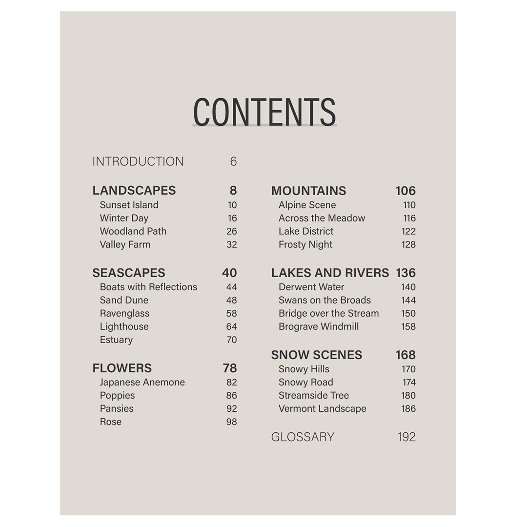 Project themes include landscapes, seascapes, flowers, mountains, lakes and rivers, as well as beautiful snowy scenes. At the end of the book, there’s a comprehensive glossary explaining the most common terms and techniques featured throughout.