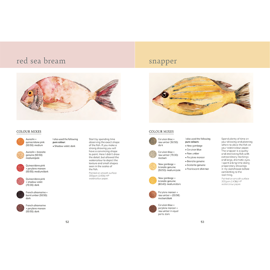 This colourful, practical book features 15 vibrant and varied coastal subjects including mussel shells, coral weed, sea grass, sardines and a blue jellyfish. All 15 subjects feature a complete list of colour mixes used with colour ratios and finished swatches for inspiration, and five of the subjects are painted step by step so that you can follow the process of selecting colours, mixing and painting from start to finish.