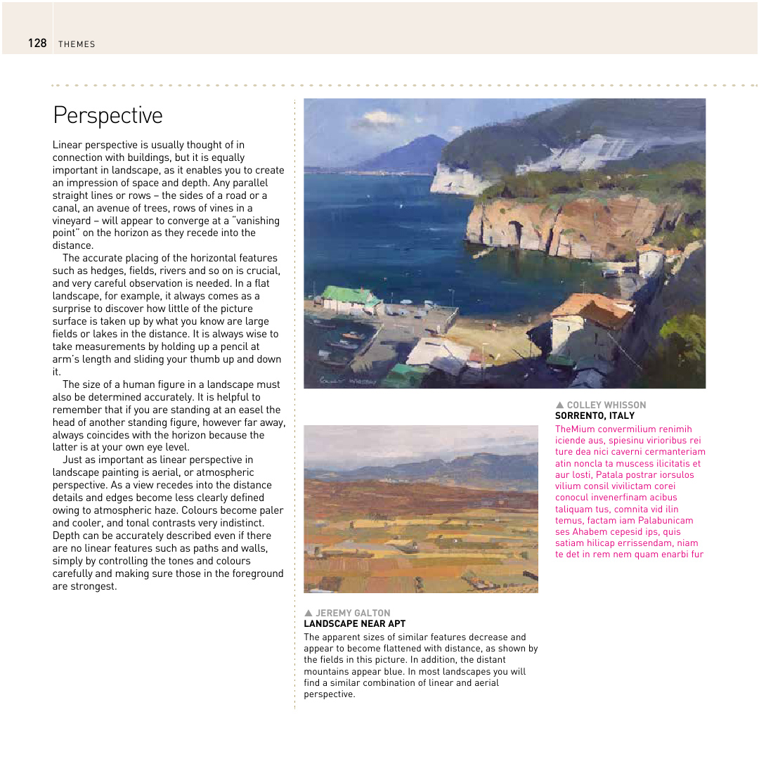 Perfect for artists of all levels, this complete reference work offers an unrivalled knowledge base in oil painting. The book is divided into two main sections: the first presents detailed step-by-step demonstrations that guide you through a broad spectrum of techniques – from basic colour mixing to advanced special effects such as *peinture à l'essence* and sgraffito. Section two focuses on key subjects and illustrates how leading artists master landscapes, architecture, portraits, still life, skies and water.