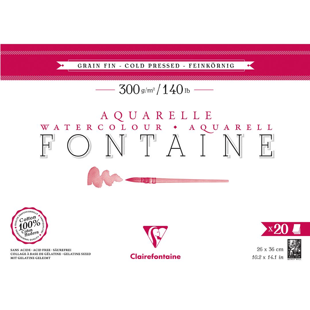 Since 1858, the French company Clairefontaine has refined the art of making paper of the highest quality. With deep roots in craftsmanship and respect for artistic creation, it has become a trusted favourite among artists worldwide. The Fontaine range is a tribute to this tradition – a watercolour paper combining classic expertise with modern precision.
