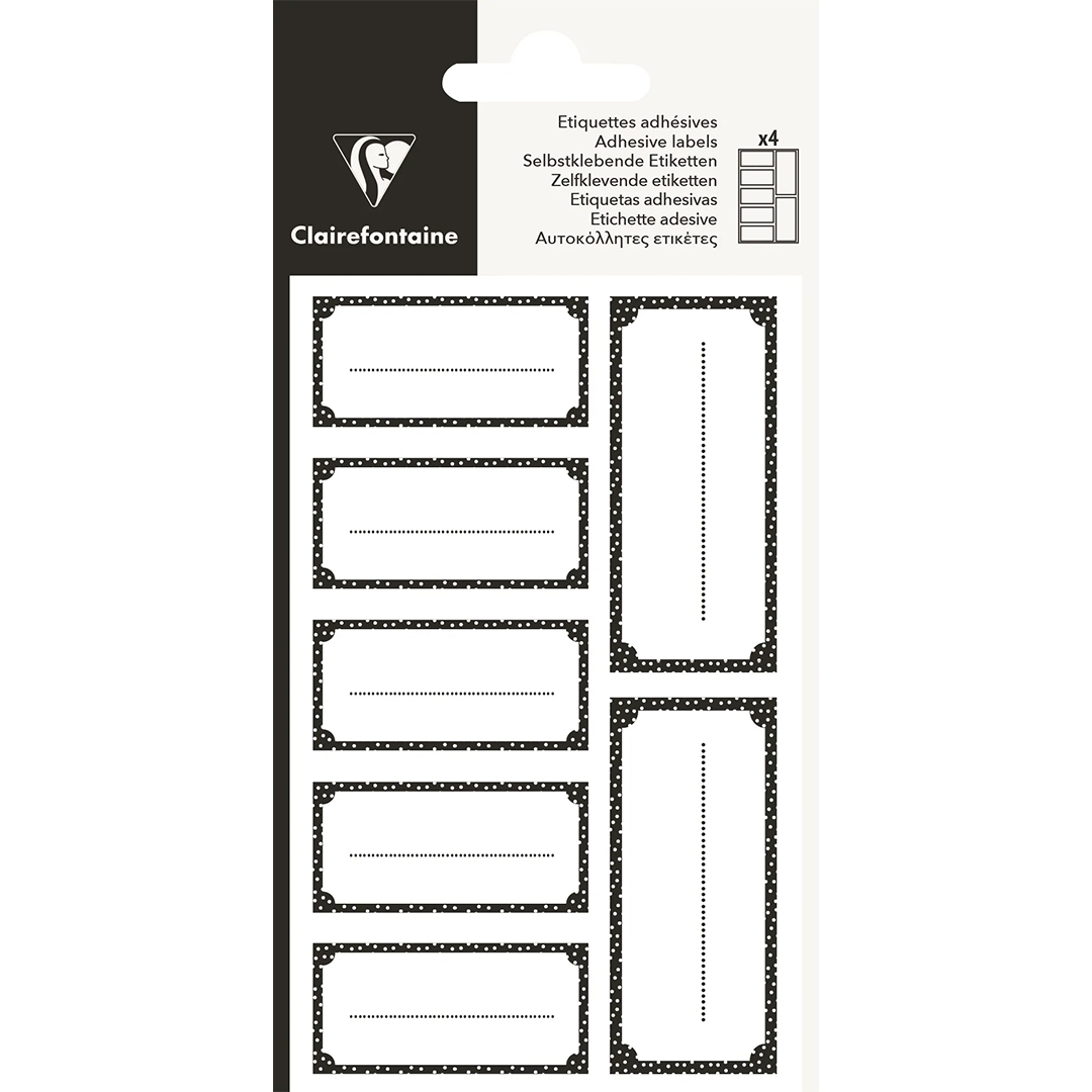 DIMENSIONS: The bag measures 8.5 x 16 cm. It contains 4 sheets of labels with 7 labels on each sheet.
