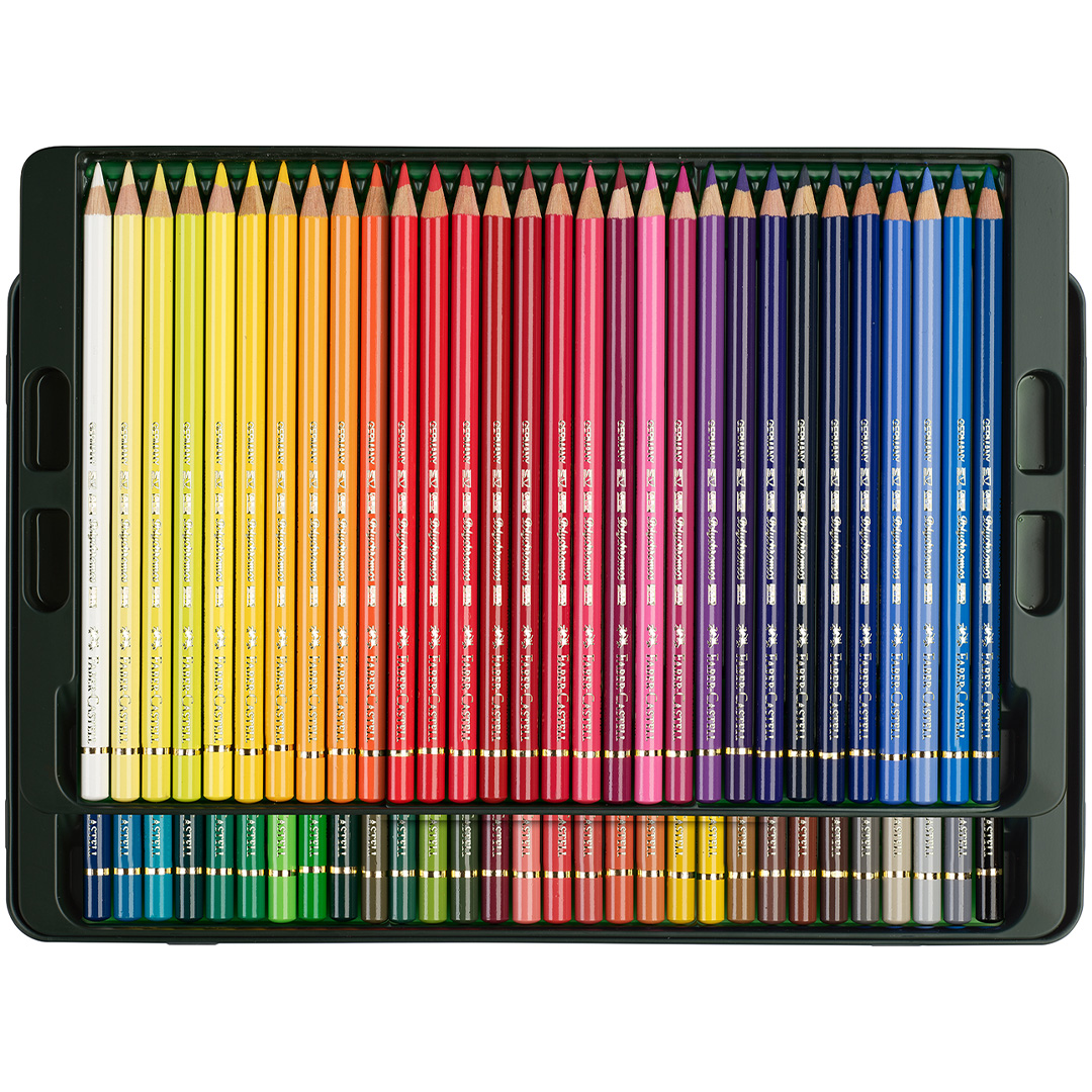 This set contains 60 Polychromos in various colours, packaged in a durable metal case.