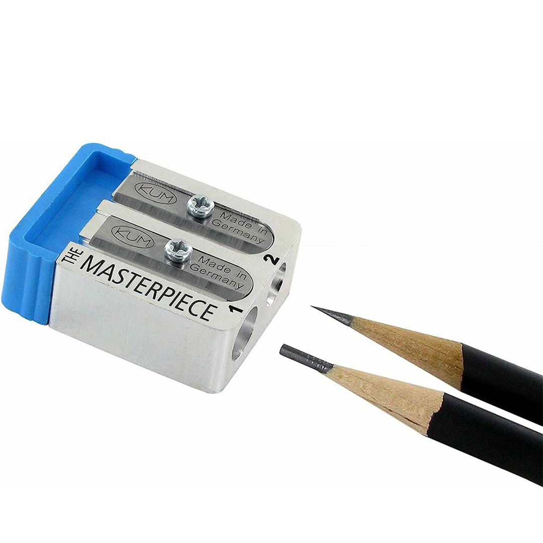 KUM Meisterwerk is a premium pencil sharpener made of lightweight magnesium with durable high-carbon steel blades that stands out for exceptional precision and durability. Handmade in Germany and quality-tested multiple times, it guarantees professional results. Developed for artists and professionals, it creates an extremely long and precise pencil tip, ideal for detailed and creative work.