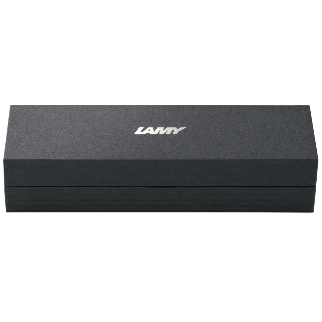 14 carat gold nib, partly platinum-plated. Black high-gloss pen body. Interchangeable grip and screw cap. Solid, spring-loaded clip. Supplied with Lamy T 10 ink cartridge in blue. Can also be used with Lamy Converter Z 27 for use with bottled ink.