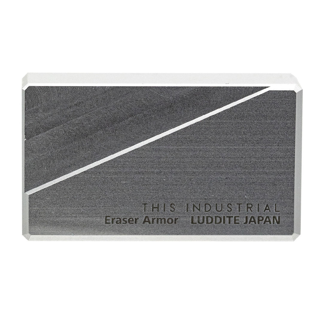 Eraser case with exclusive industrial feel from Japanese LUDDITE Co – a sleek aluminium case combining ruggedness with minimalist design. Crafted in Japan through precision machining of solid aluminium.