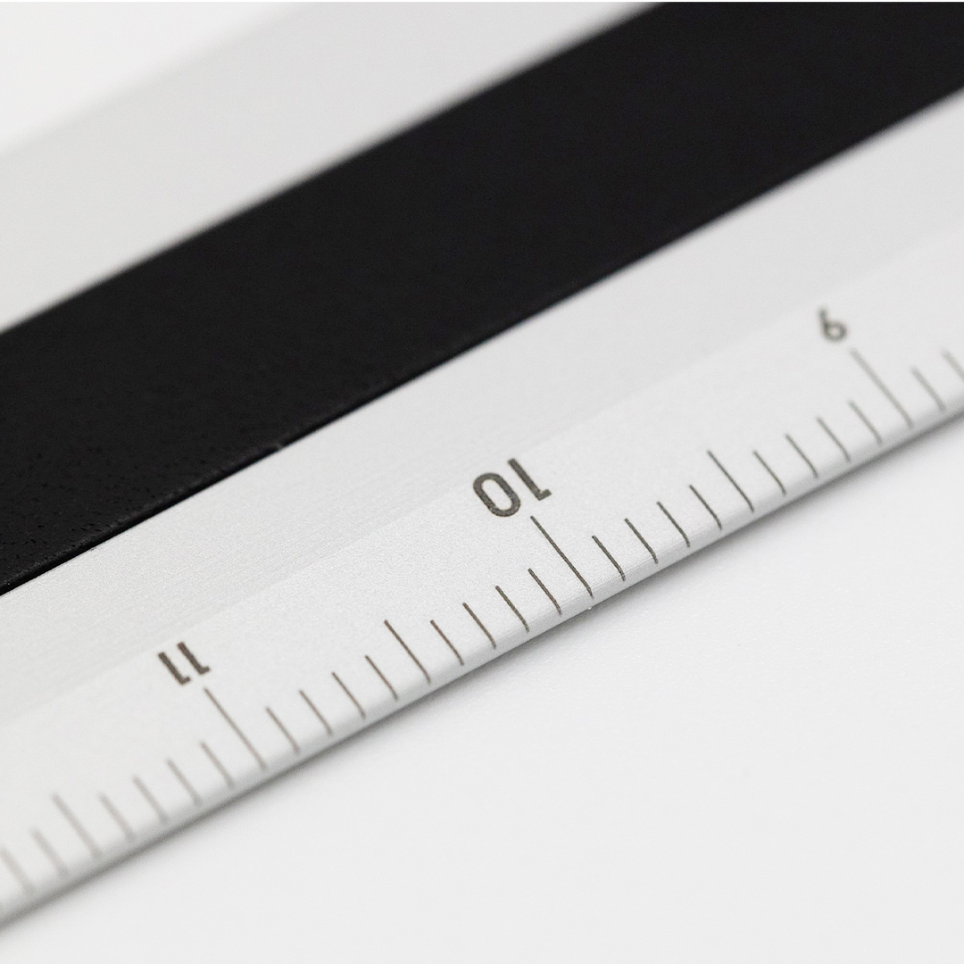Aluminium ruler with an exclusive industrial feel from Japanese LUDDITE Co – a sleek ruler combining robustness with minimalist design. Crafted in Japan through precision machining of solid aluminium for timeless aesthetics and durability.
