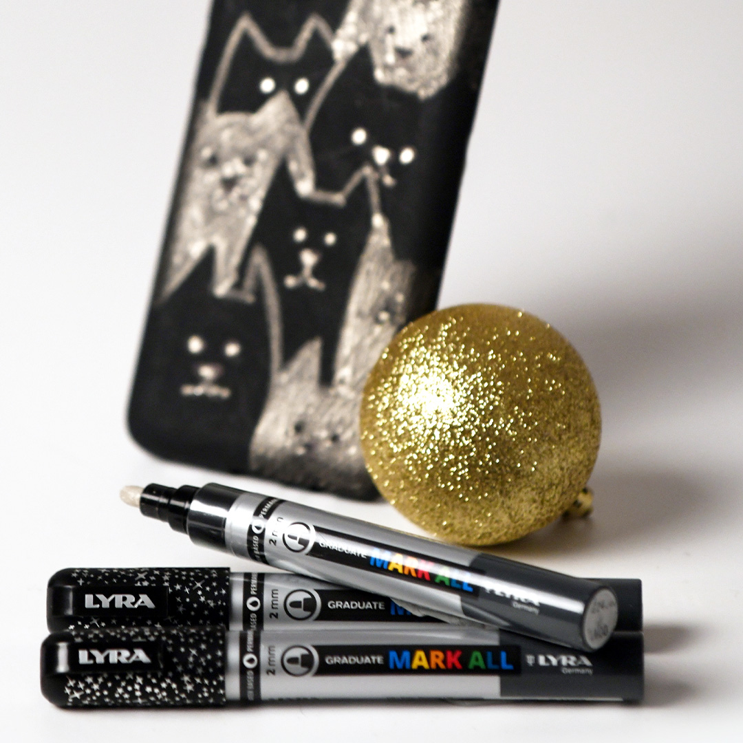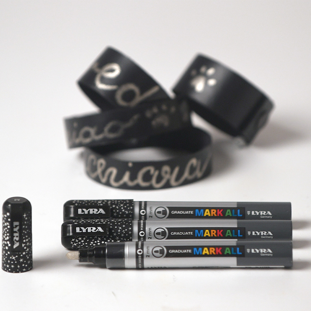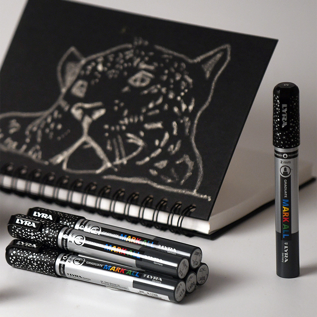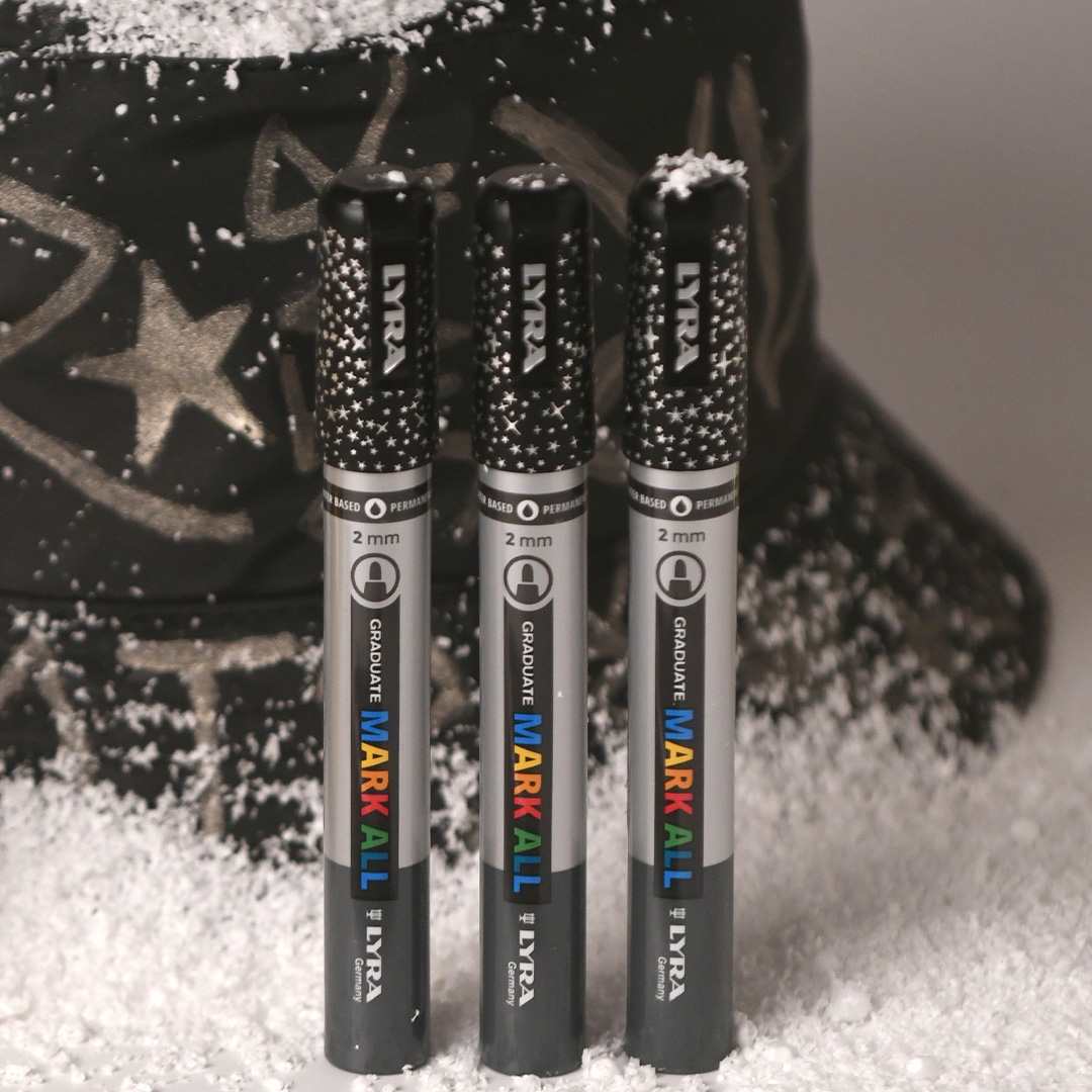 Lyra Graduate Mark All contains a transparent acrylic colour with mineral glitter that gives an effect on all surfaces. Use on wood, plastic, fabric or paper!