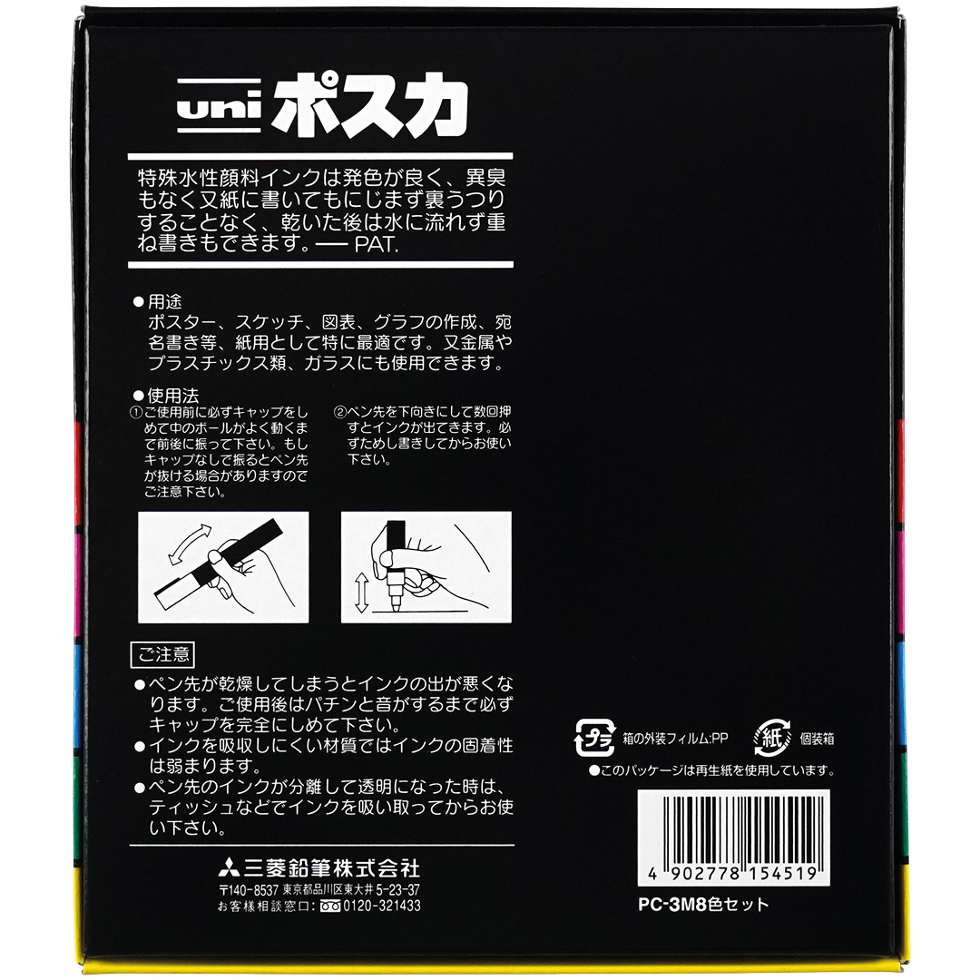 Uni Posca is a water-based opaque paint pen with pigments that adhere to a range of surfaces like paper, cardboard, wood, stone, textile, glass, plastic, and metal. The colour is permanent on many porous substrates and can be removed from smooth surfaces, making experimentation easy without damaging the base. The colour dries quickly, is odourless, and suits both spontaneous craft projects and more advanced artistic works.