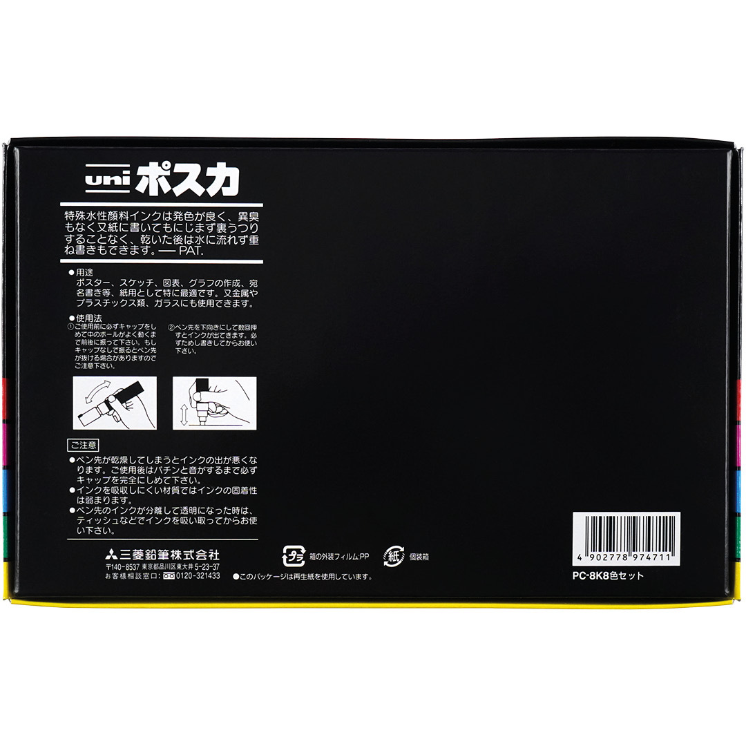 Uni Posca is a water-based opaque paint pen with pigments that adhere to a range of surfaces like paper, cardboard, wood, stone, textile, glass, plastic, and metal. The colour is permanent on many porous substrates and can be removed from smooth surfaces, making experimentation easy without damaging the base. The colour dries quickly, is odourless, and suits both spontaneous craft projects and more advanced artistic works.