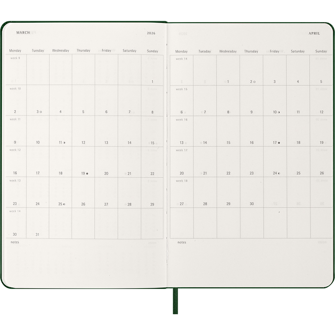 Calendar 12M Daily 2026 Hardcover Large Myrtle Green