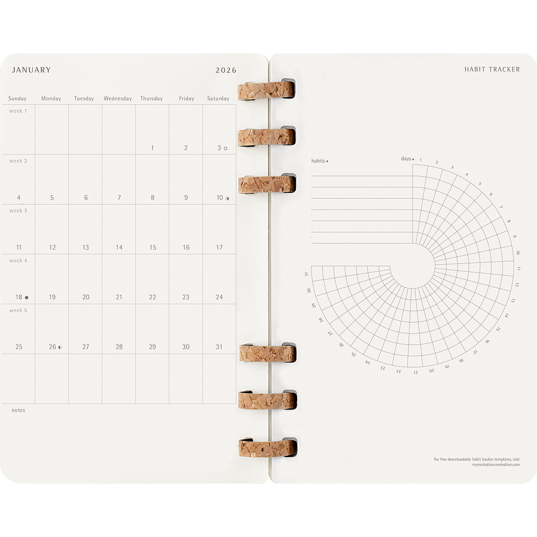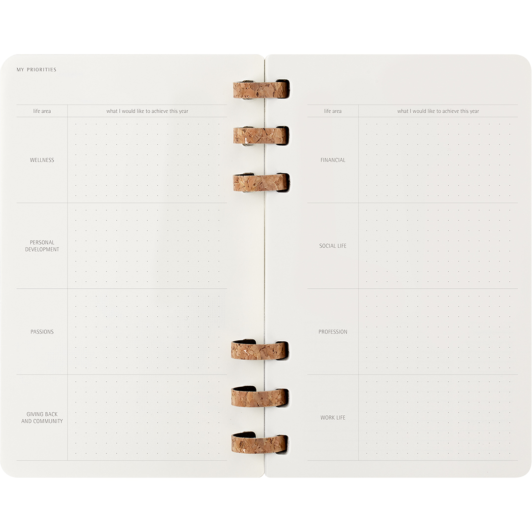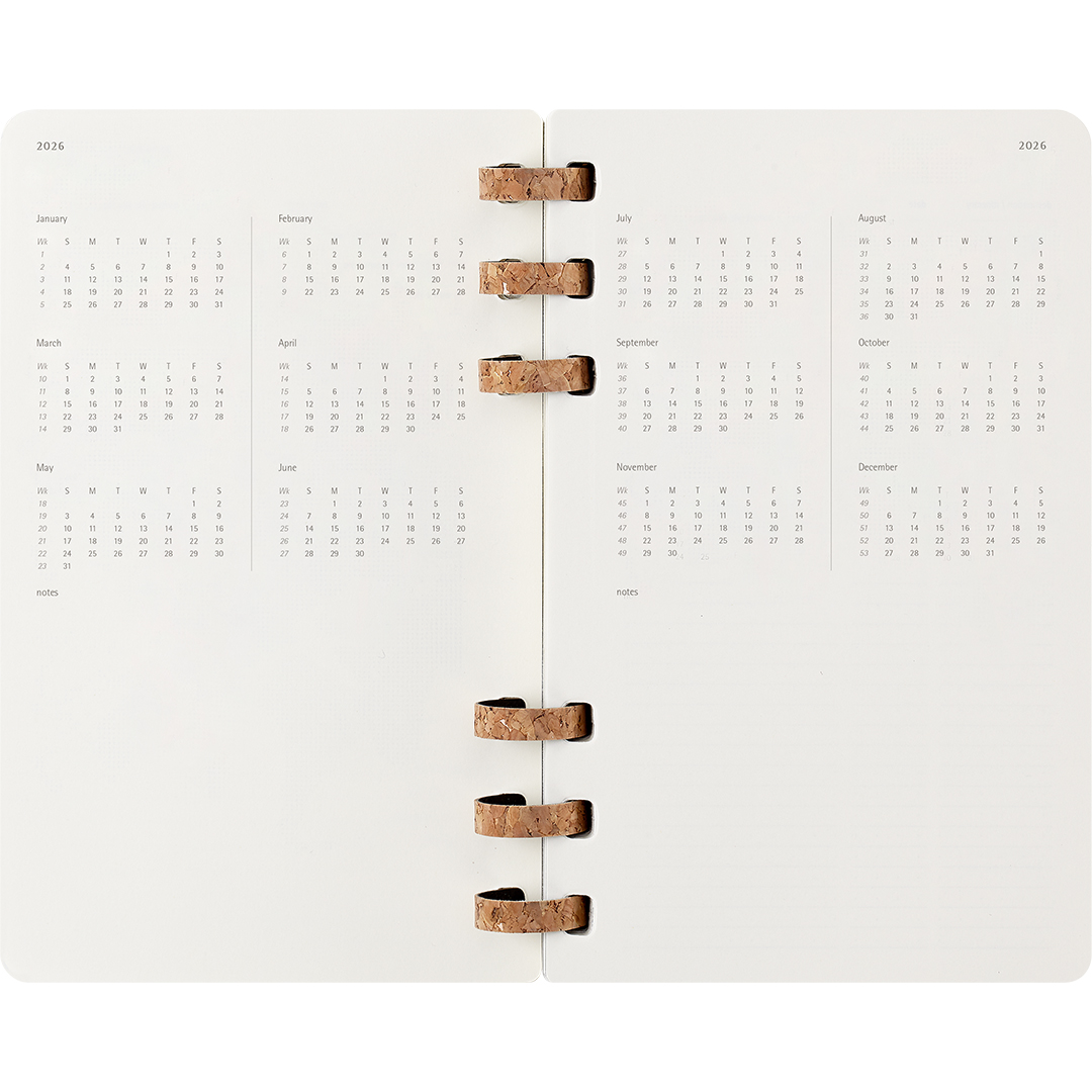 With a spiral spine in trendy cork and made of eco-friendly, high-quality 100g 'Remake' paper from the Italian company 'Favini Paper'. Combining monthly and weekly planning, this calendar provides ample space for writing and planning and is well designed to support student life.