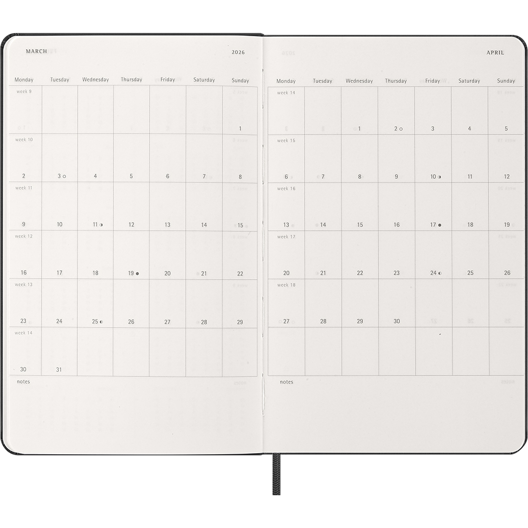 Calendar 12M Weekly Notebook 2026 Hardcover Large Black