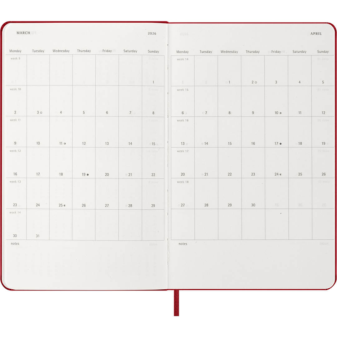 Calendar 12M Weekly Notebook 2026 Hardcover Large Red