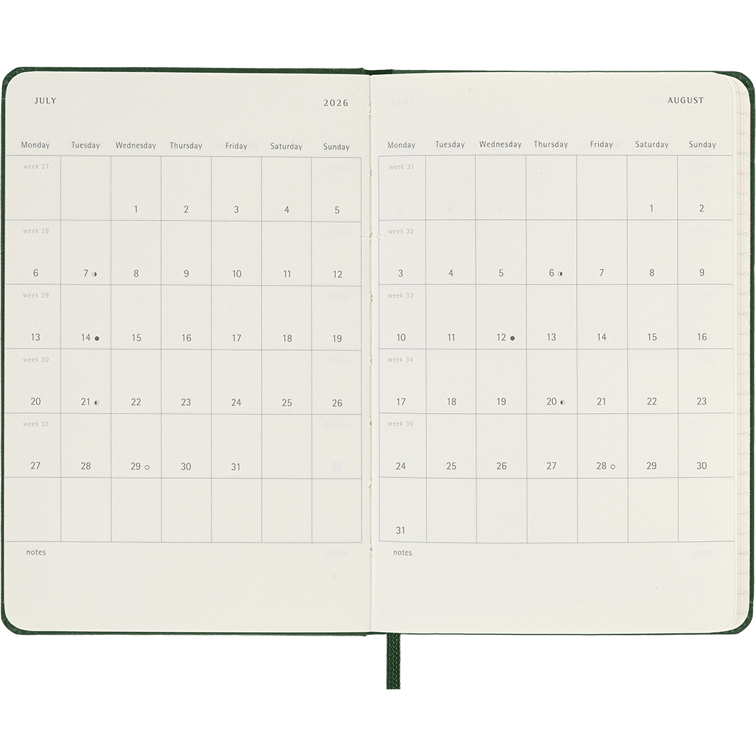 Calendar 12M Weekly Notebook 2026 Hardcover Pocket Myrtle Green