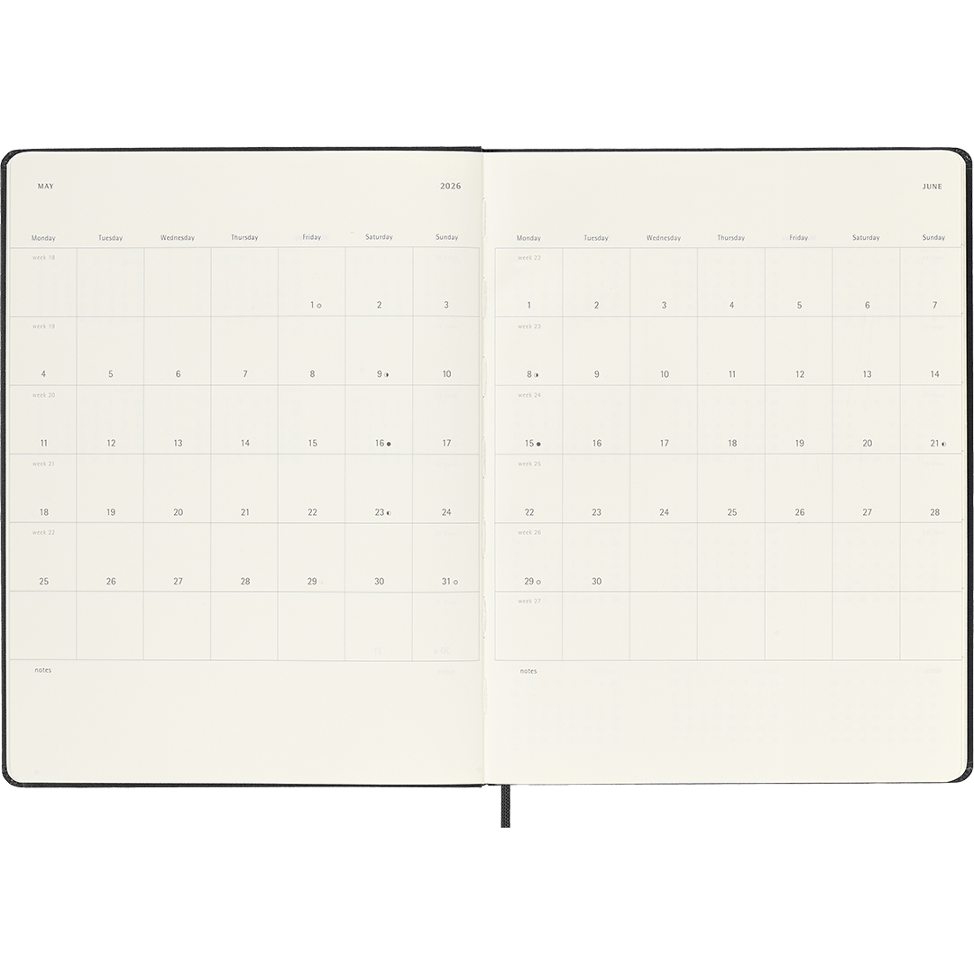 Calendar 12M Weekly Notebook 2026 Hardcover XL Black