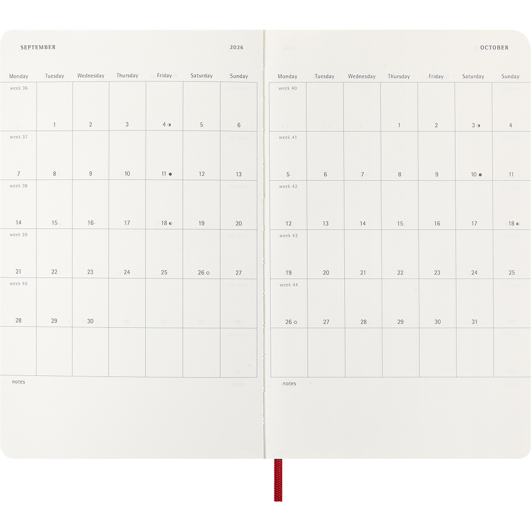 Calendar 12M Weekly Notebook 2026 Softcover Large Red