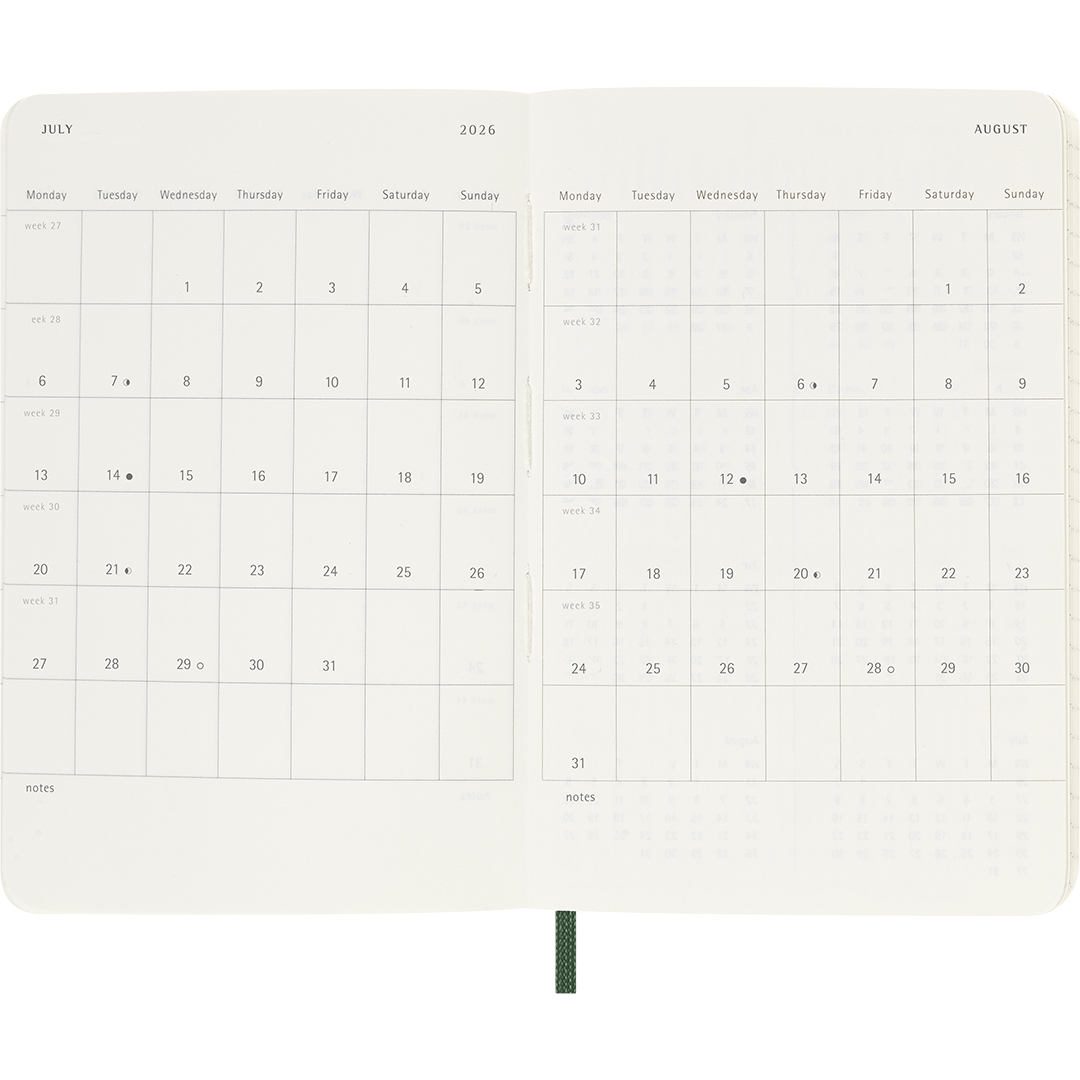 Calendar 12M Weekly Notebook 2026 Softcover Pocket Myrtle Green