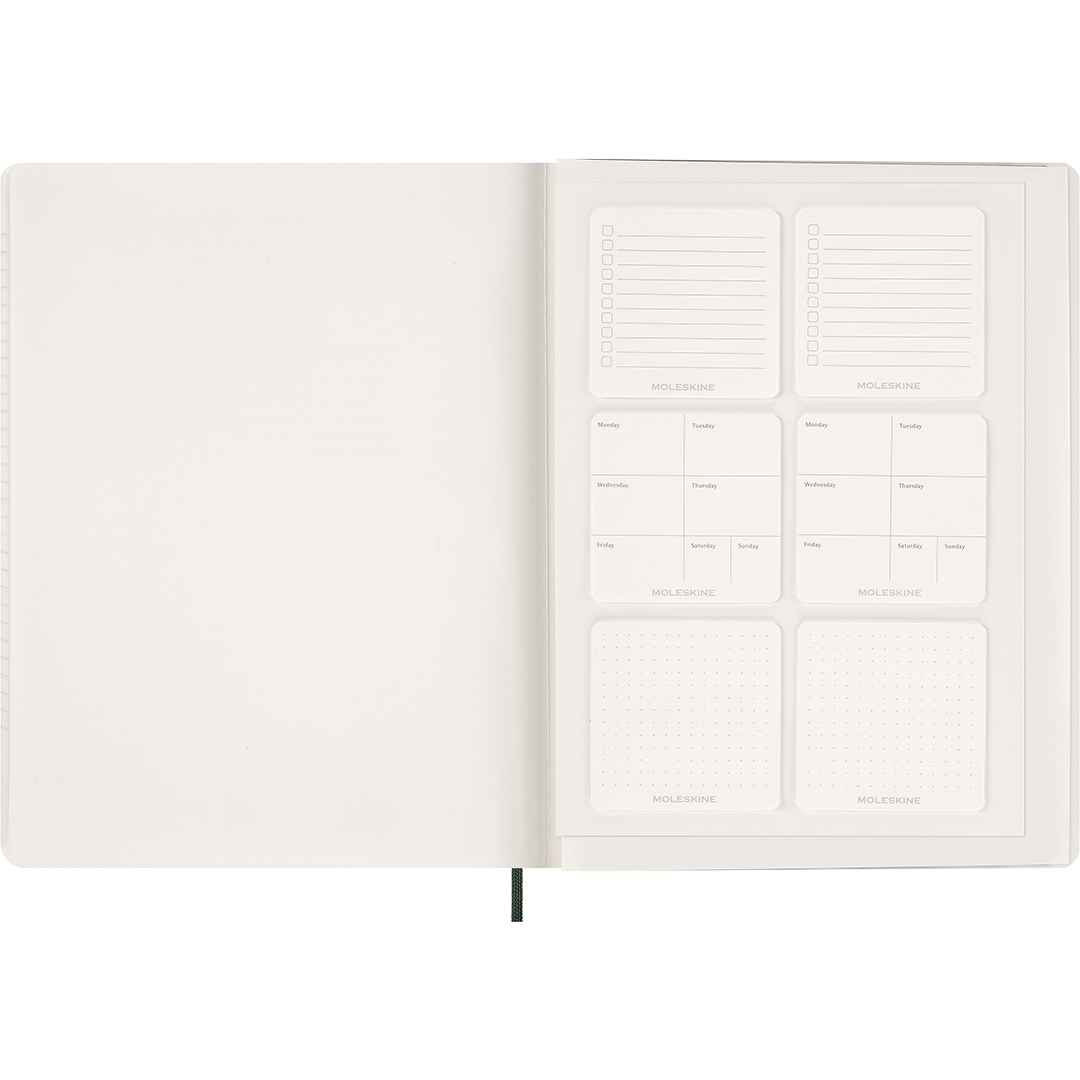 Smart year planner in a soft, slim format from Moleskine, dated from January to January, with all days of the week across a two-page spread. The Essential Planner is designed to be lightweight, portable and easy to use. Make use of the included stickers and sticky notes to plan in your own way.