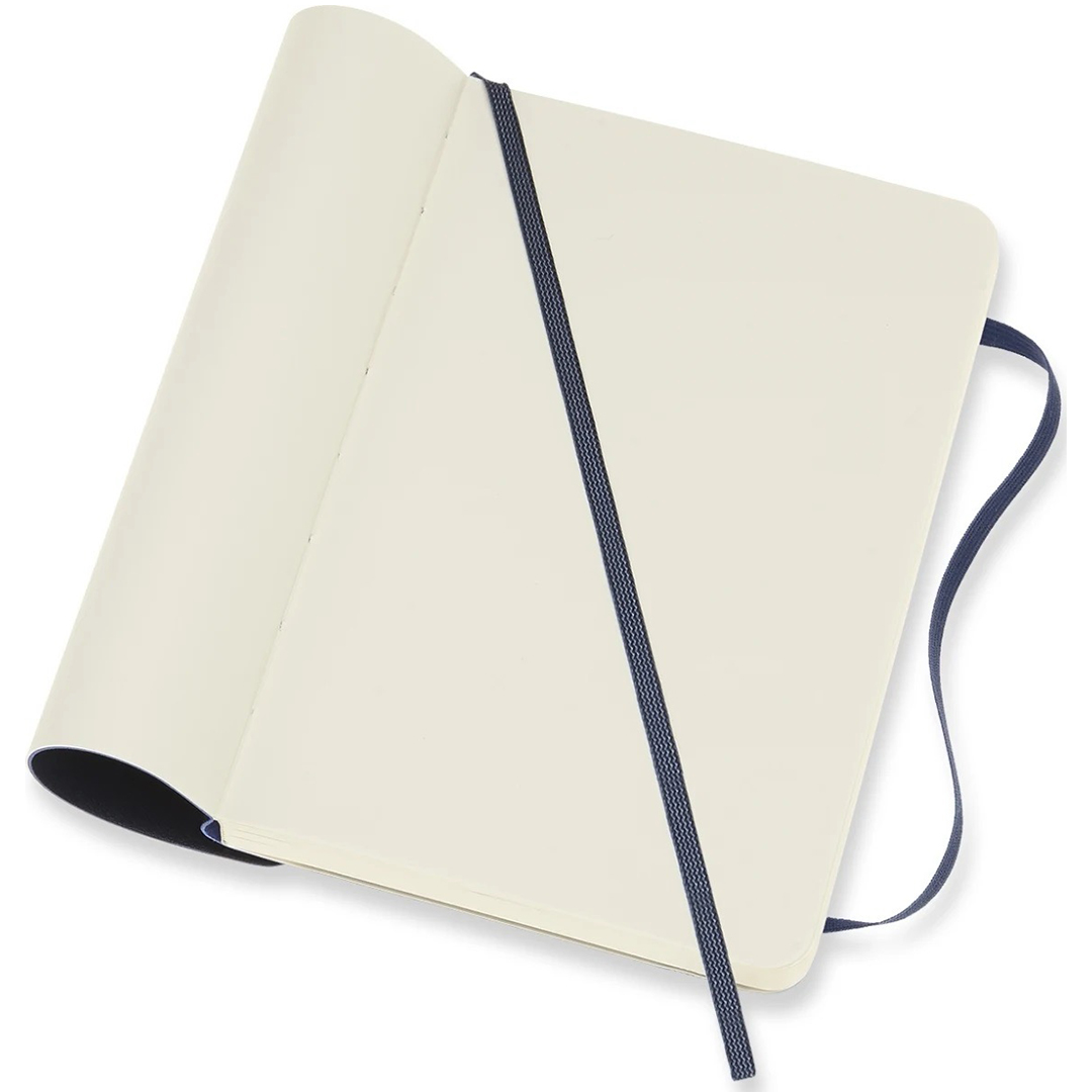 Notebook with a soft, flexible cover in Pocket size (9x14 cm) from Italian brand Moleskine. The notebook contains 192 pages and features an expandable inner pocket and an elastic band that keeps the notebook closed when not in use. The ivory-coloured paper is FSC-certified, acid-free, and of premium quality!