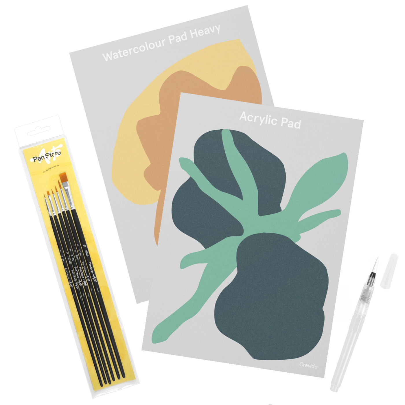 This “Creativity Booster” add-on includes two A4 pads, a 6-piece set of synthetic brushes, and a refillable water brush.