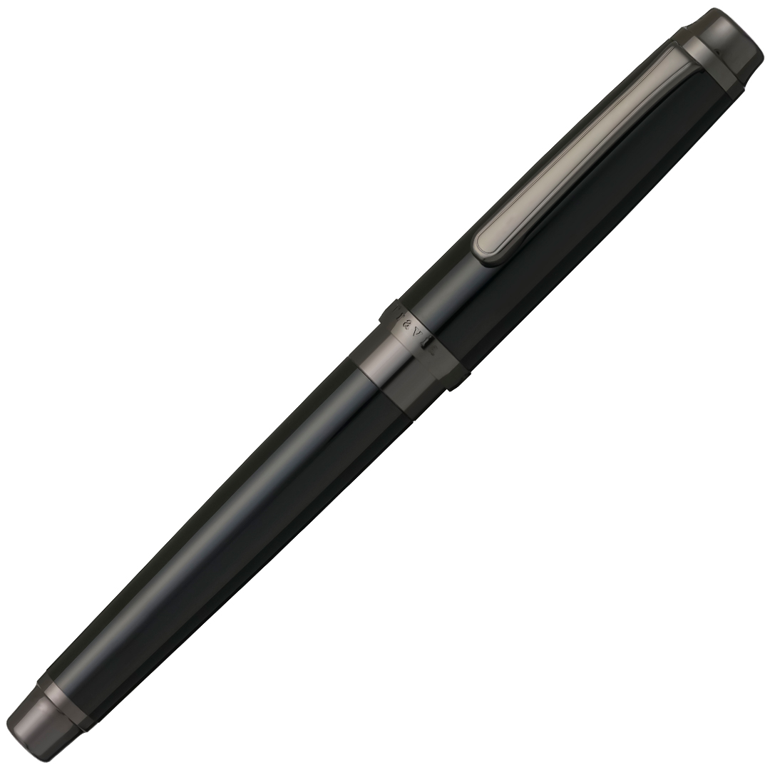 #3776 CENTURY Travia is an elegant fountain pen that combines classic Japanese pen design with modern writing comfort. It features a black, understated finish with black nickel metal details and a 14K gold nib with rhodium plating, providing a smooth and controlled writing experience.