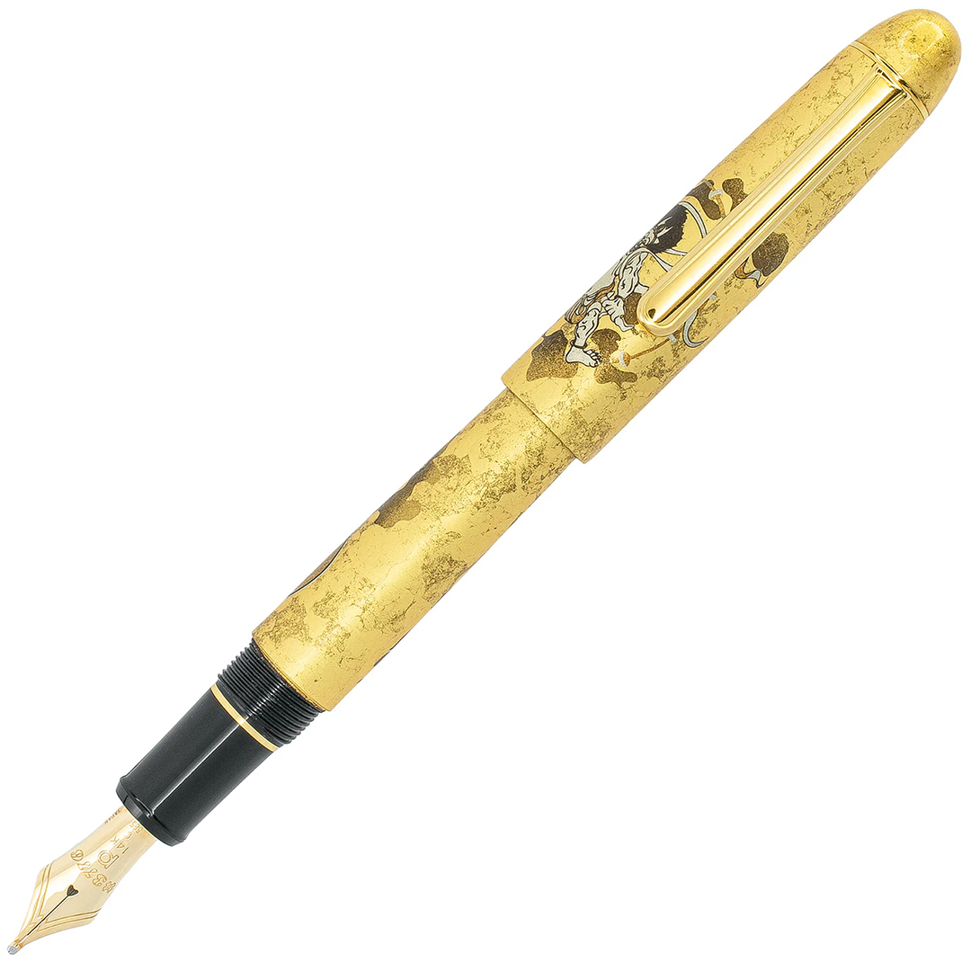 The design on each pen shaft is unique due to the process of hand-applying the patterns; each Fujin (wind god) and Raijin (thunder god) is subtly different. Along with the entirely unique application of the gold leaf, this means no two pens are alike.
