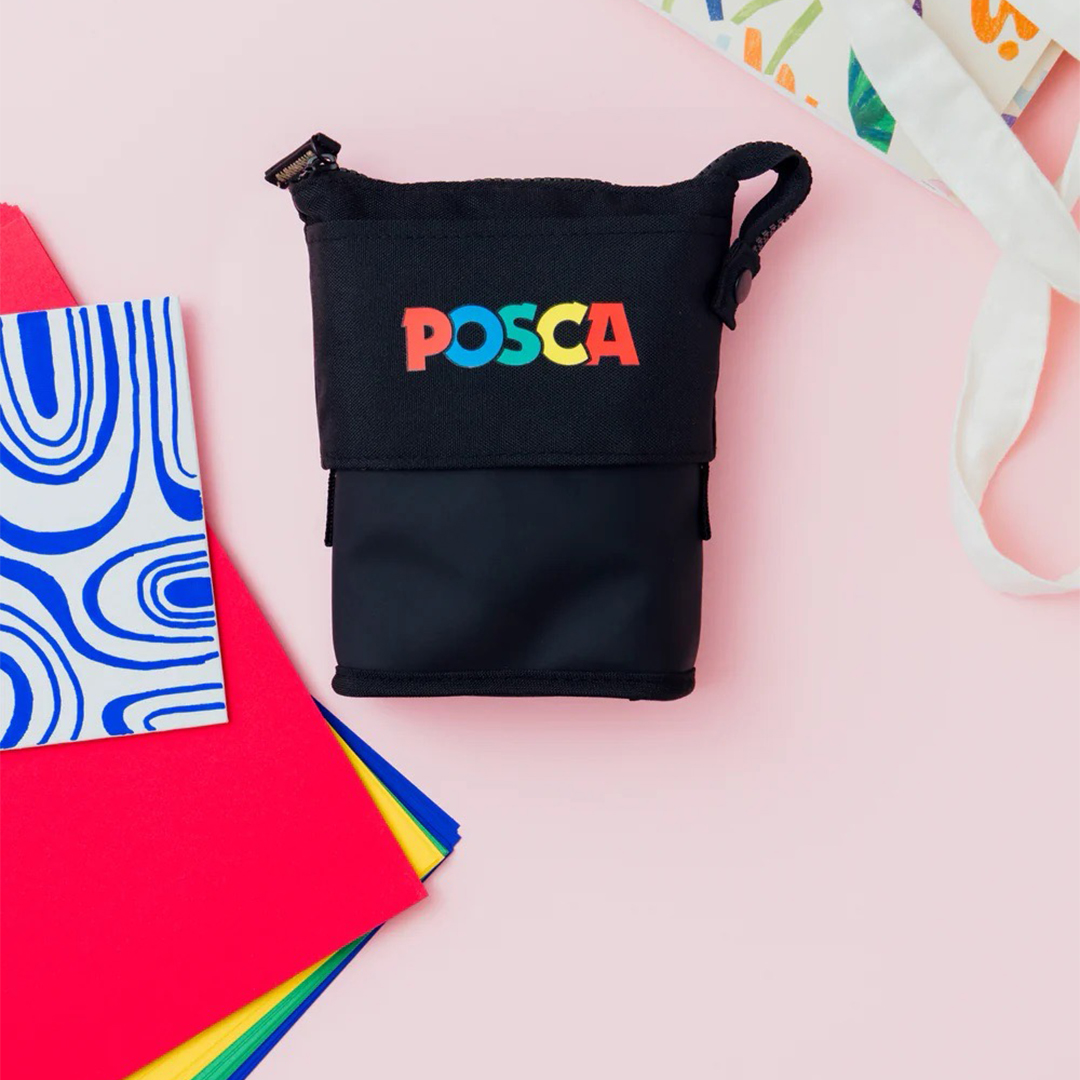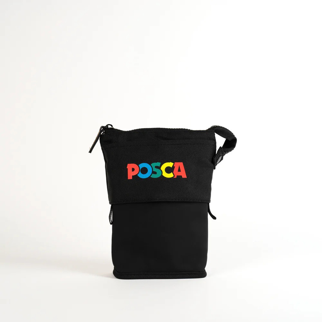 By pulling down the upper edge of the pen case, it becomes a stable pen stand. It holds up to 16 Posca PC‑5M.