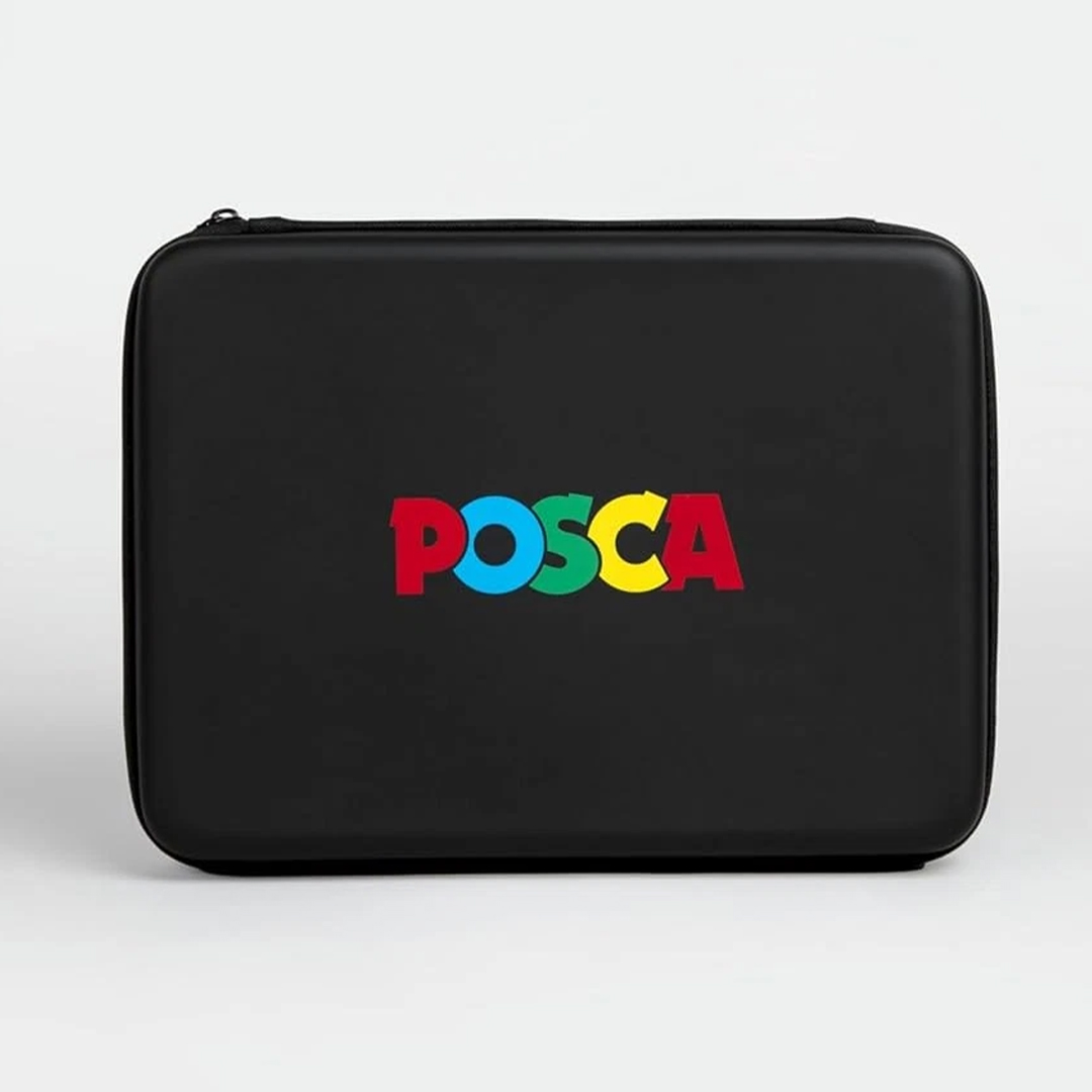 Delivered in a sturdy, high-quality zip case. The exterior is hard with a rubberised texture and features the Posca logo.