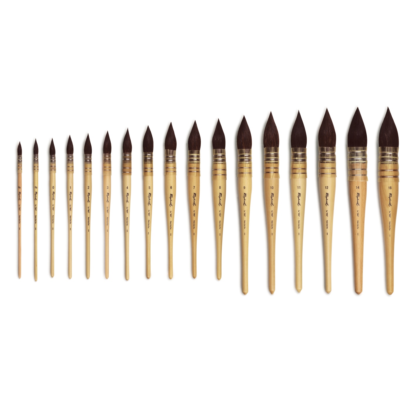 The brush provides a lot of tension in each brush stroke and the best durability. Clear lacquered short wooden handle and hand-bound quill ferrule.