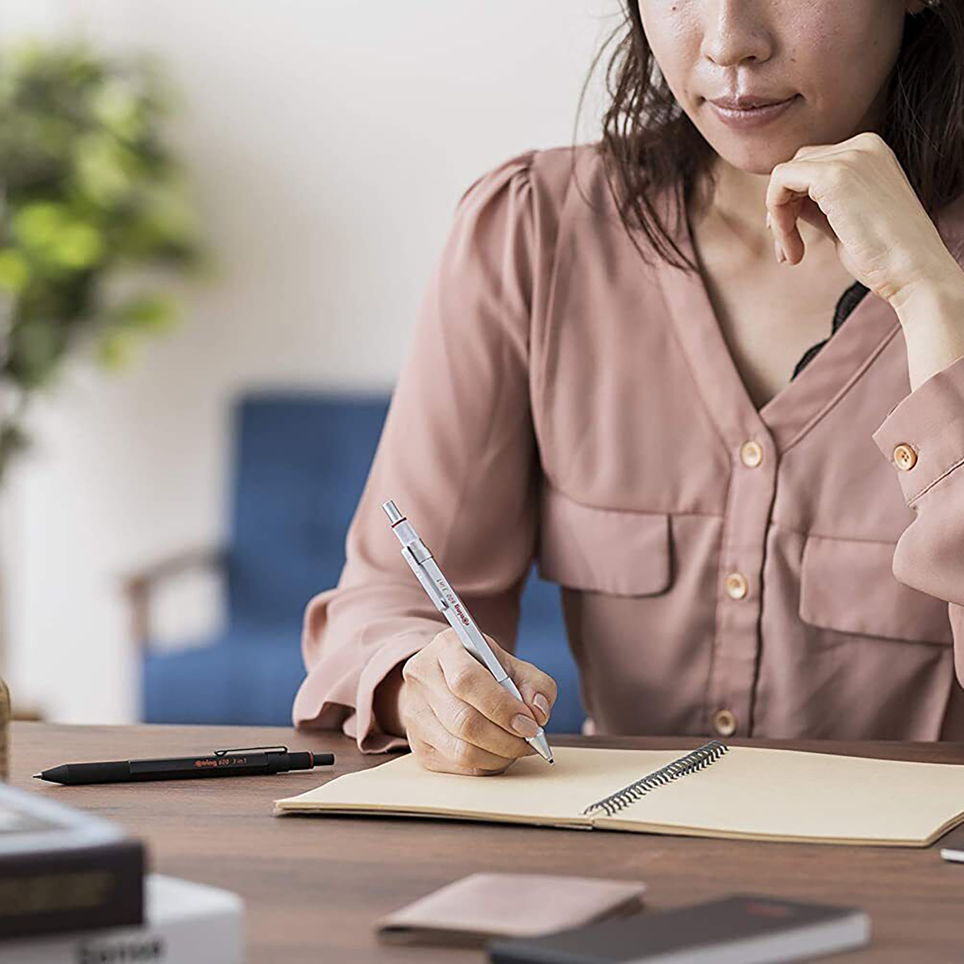 Choose between the different refills by turning the knurled twist-knob at the top. Pressing down the knob will reveal the selected tip.