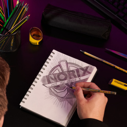 Staedtler Norix has a really smart design on its graphite pencils where the shape of the pencil itself provides an ergonomic grip. The wood of the pencil is black, which gives a cool and unique look. The pencils are made in Germany from recycled PEFC-certified wood from sustainably managed forests.