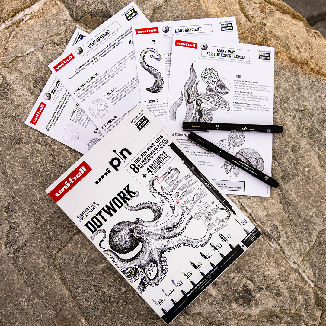 This set is specially designed to offer precision and control, resulting in realistic illustrations with impressive shadows and depth. It includes eight fineliners in various nib sizes and a 0.5 mm mechanical pencil. The set also contains inspiring and educational material in the form of four instruction sheets and a booklet that helps both beginners and more advanced artists develop their skills and create unique dotwork pieces.