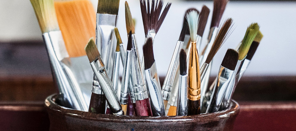 Among brushes for acrylic paint you can find brushes with animal hair, hog brushes are the most common one, and brushes with synthetic hair. The benefit of using brushes with synthetic hair is that they do not leave prints in the colour, and that they are more durable than brushes with a thinner hair. Both hog brushes and synthetic brushes can manage the heaviness of the paint, which is important and will make your painting technique much easier. For acrylic paint you can use most brush tips, angled, round and flat, everything depends on what result you wish for. Have a look around and find the perfect brush for you!
