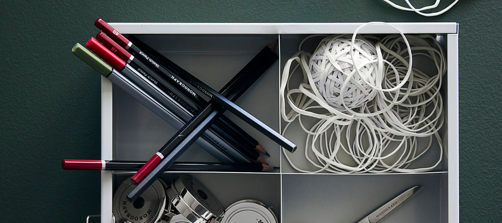 To arrange one's things is something that makes most people feel better. If you feel that your studio, workspace or your home holds a lot of stuff without an assigned place, this category is definitely for you. You will find storage boxes, folders, pen holders and other accessories here that will help you get organised. To store your things in a good way does not only lead to an organised workspace, it will also protect your art supplies and your artworks from dirt, dust and damages.