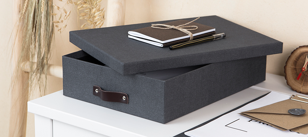 In this space you will find boxes with covers and with compartments, boxes in sets, drawing tubes and storages for pens. Both for big artworks and small supplies, made from good materials and simplistic design.