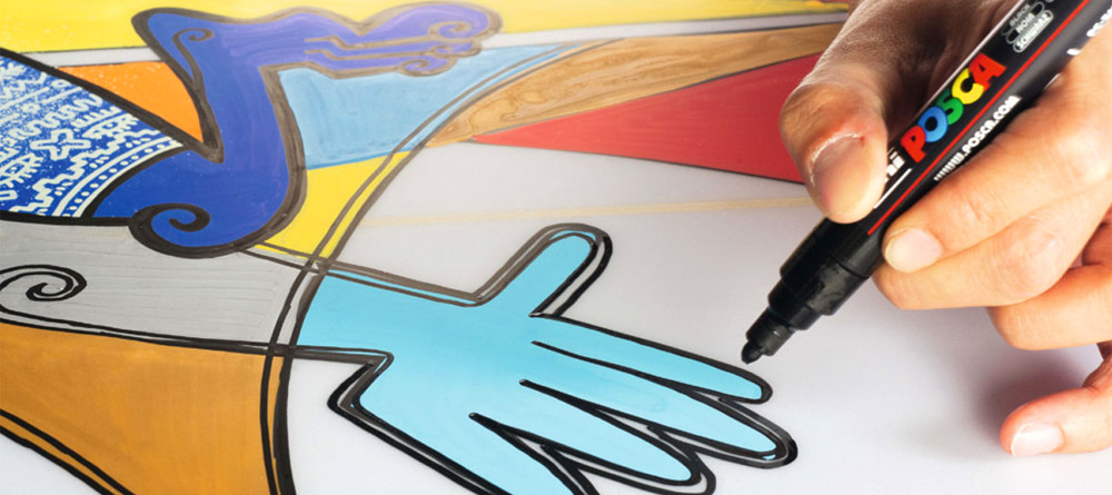 Posca markers has been around for 30 years and can be used for many different art projects. When launched in the beginning of the 80s, the pen quickly became very popular within the Graffiti community. The best thing about Posca pens is that it works on many surfaces: wood, cardboard, paper, fabric, porcelaine, and glass. Posca is permanent on porous surfaces but can be washed off if used on shiny surfaces.